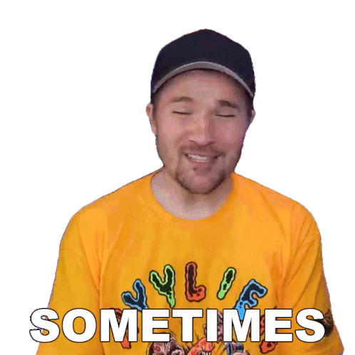 a man wearing a yellow shirt that says " sometimes " on it