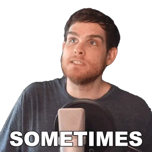 Octavian Morosan, also known as Kripparrian, wearing headphones and a blue shirt with 'Sometimes' written on it, nodding his head.
