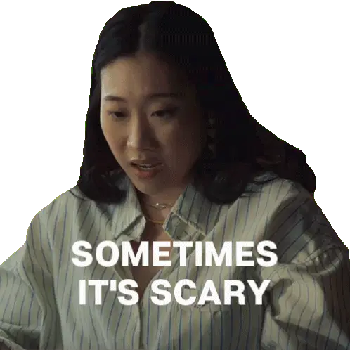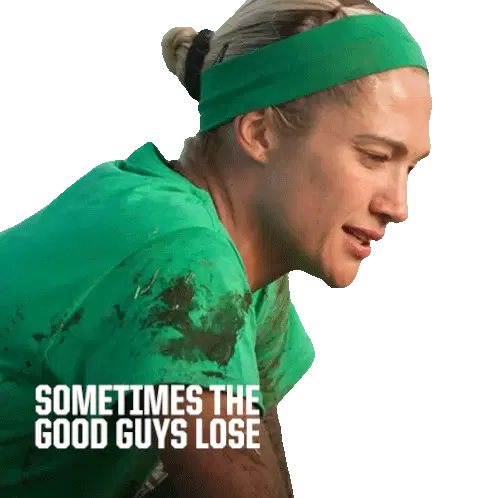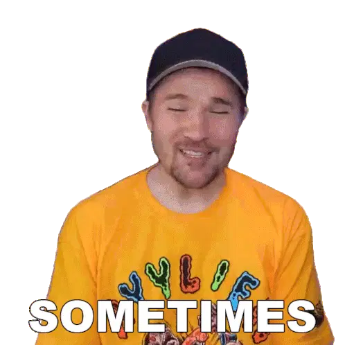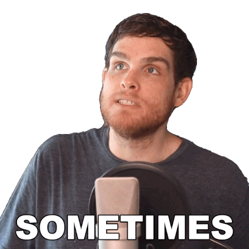 Sam Johnson looks up thoughtfully with a microphone, displaying the caption 'SOMETIMES' in this animated sticker.