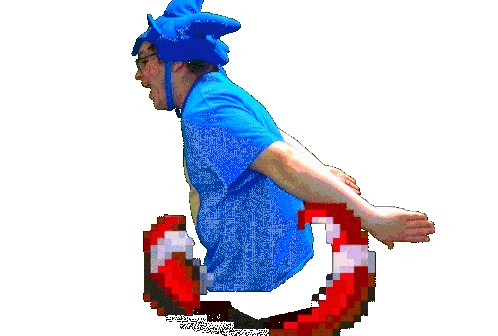 A dynamic pixel art sticker featuring Sonic the Hedgehog in his iconic running pose, capturing his speed and energy.