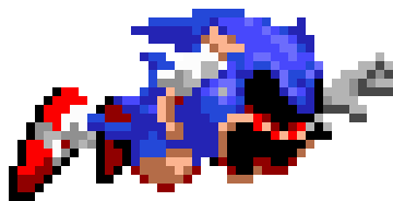 Sonicexe in pixel art, confronting yourself in the Final Zone Fnf, featuring a sword.