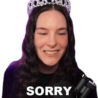 Cristine Raquel Rotenberg, wearing a crown, smiles and says 'SORRY' in this apologetic sticker.