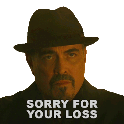 Angel Batista, wearing a hat and suit, expresses condolences with the text "Sorry For Your Loss."