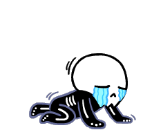 A cute skeleton character is crying and expressing apology, kneeling with tears streaming down its face.