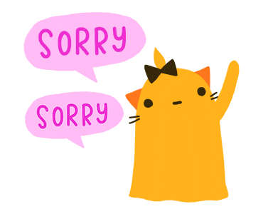 a cat with a bow on it says sorry