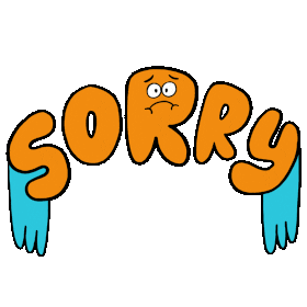 An animated sticker showing the word 'SORRY' in orange, with a sad face, being comforted by two blue arms.