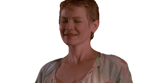 Dianne Wiest as Lucy winks and smiles, expressing 'Sorry' in a charming and apologetic manner.