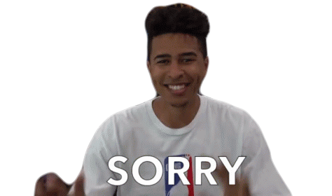 Kristopher London says 'SORRY' with outstretched hands and a sheepish smile, expressing regret or apology.