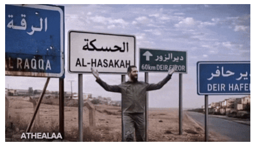a man stands in front of a sign that says al-hasankah
