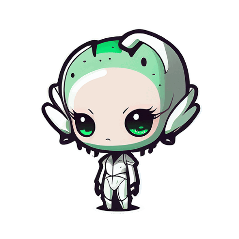 A cute chibi-style space alien sticker with big green eyes and a light green head, featuring Allan and Gregorio.