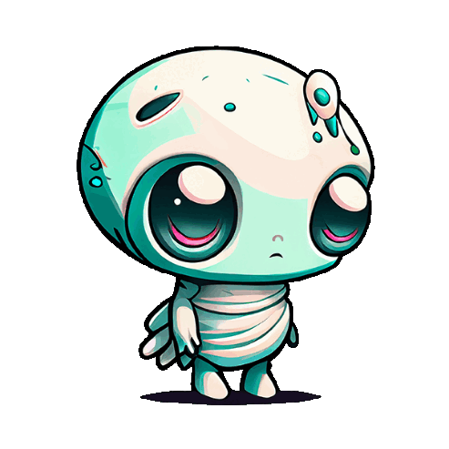 A cute, big-eyed space alien character with a teal and white color scheme, looking curious and friendly.