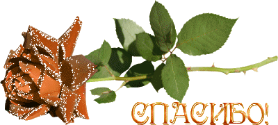 A beautiful bouquet of red roses with green leaves, featuring the Russian text "Спасибо" (Thank you).