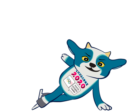 Yodli, the official mascot of the Lausanne 2020 Winter Youth Olympic Games, speed skating with enthusiasm.