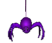 A cute, pixelated purple spider with black eyes hangs from a string, wiggling its legs.