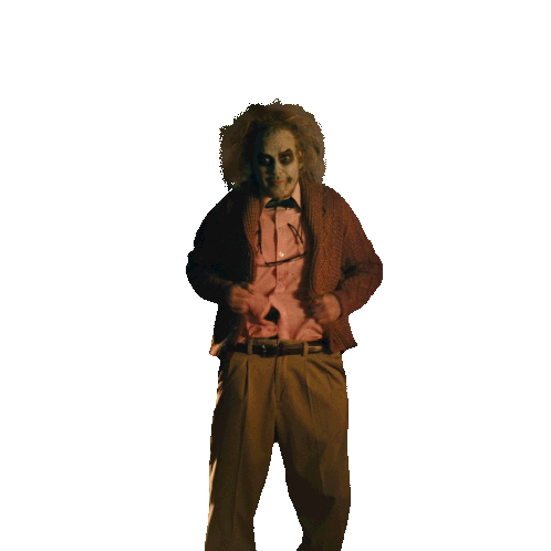 Beetlejuice, portrayed by Michael Keaton, literally spills his guts, revealing a grotesque mass of creatures from his chest.