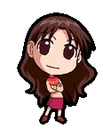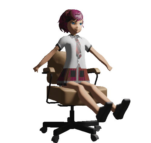 Yukari from Digital Devil Saga spins playfully in an office chair, showcasing a fun and dynamic moment.