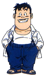Senbei Norimaki from Dr. Slump, a cheerful and chubby character, spins around with a wide smile.
