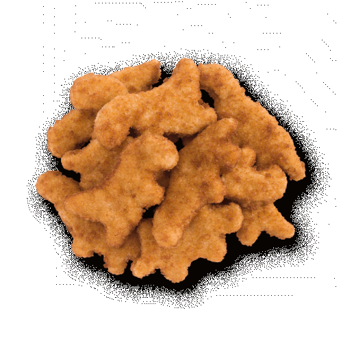Animated sticker featuring a pile of golden-brown, dinosaur-shaped chicken nuggets spinning playfully.