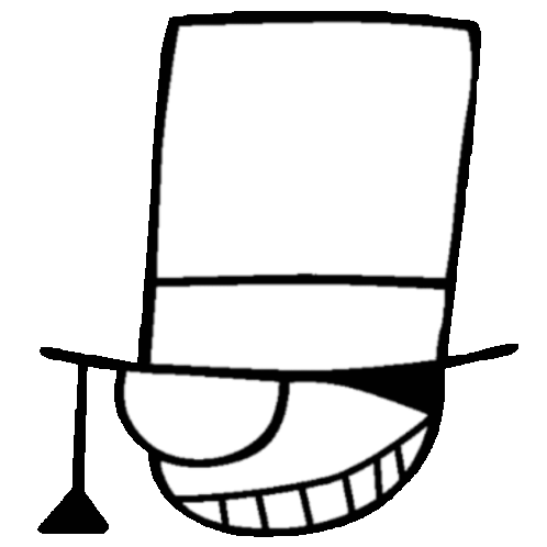 a black and white drawing of a top hat with a microphone attached to it on a white background .