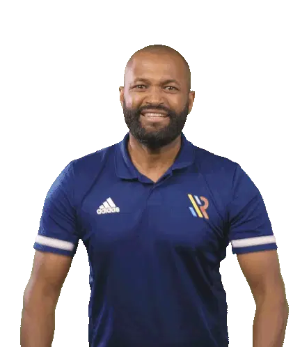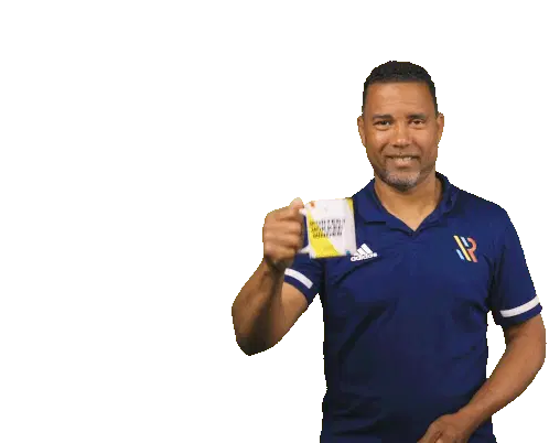Erkan from Sportbedrijf Rotterdam smiles and gives a positive thumbs up gesture, conveying approval and encouragement.
