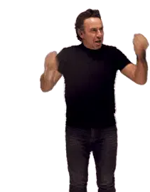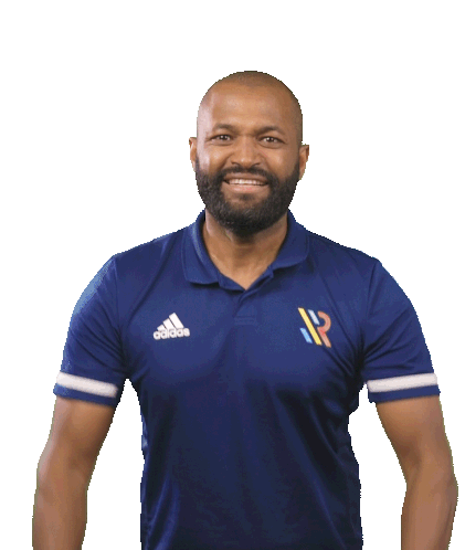 Elson from Sportbedrijf Rotterdam cheers enthusiastically, pumping his fists in celebration with a big smile.