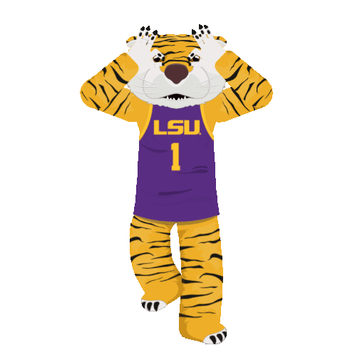 a tiger mascot is wearing a purple jersey with lsu on it