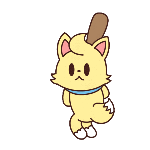 A cute yellow cat character with a baseball bat and ball, ready for a sporty game.