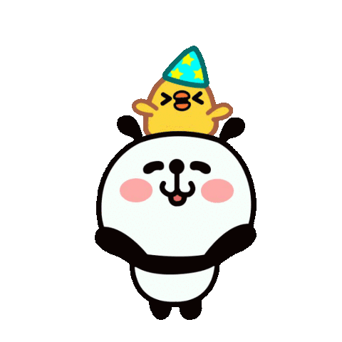 A cute panda and chick celebrate with confetti, perfect for Spring Festival congratulations.