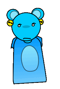 Sprunked Sprunki, a cute blue bear-like character with yellow ear bells, stands still and looks forward.