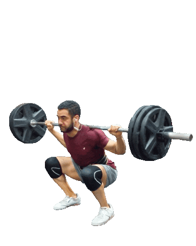 A man performs a barbell squat, showcasing strength and fitness, associated with Squatfit and Hamletsquatfit.
