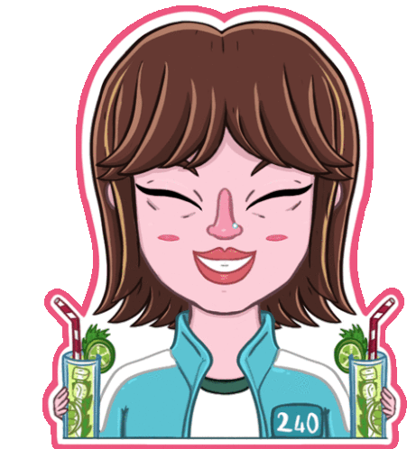 a girl with the number 240 on her jacket is holding two drinks