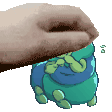 a pixel art of a hand holding a green frog