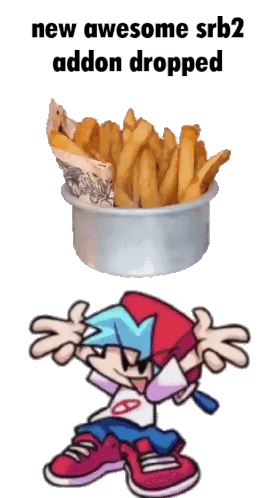 An excited Boyfriend from FNF reacts to the announcement of a new SRB2 addon dropping, accompanied by fries.