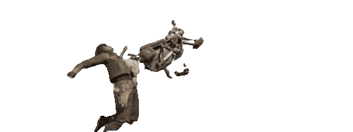 Kay Vess from Star Wars Outlaws is seen falling, reaching out to her companion Nix, who is attached to a speeder during a crash.