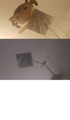 Nix, the pet from Star Wars Outlaws, is seen in a shower, transitioning from a plush toy to its real form.