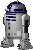 An animated pixel art sticker of R2D2, the iconic robot from the Star Wars saga, with subtle head movements.