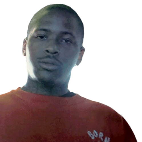 Rapper YG stares intensely at the camera, wearing an orange t-shirt with 'BORN' visible on it.