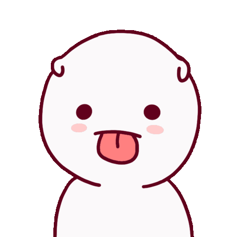 A cute white cartoon character with its tongue out, intensely drooling from extreme hunger or craving.