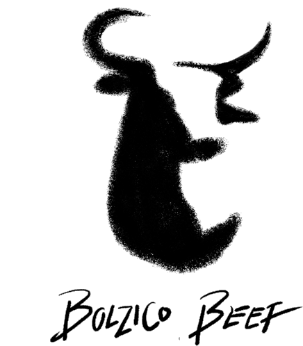 A striking logo for Bolzico Beef, featuring a stylized bull's head and the brand name, associated with Nico Bolzico.