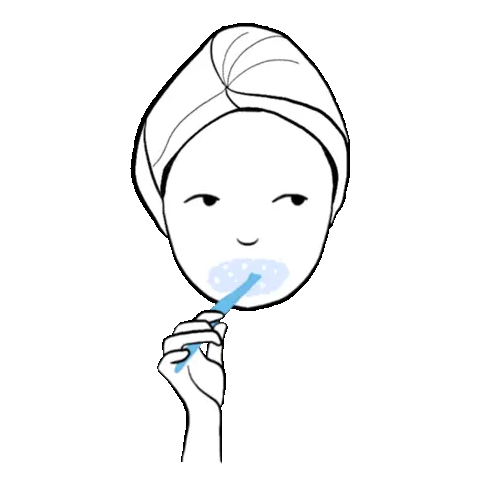 A cheerful cartoon girl with brown hair winks and smiles while wearing a light blue bath gown, ready for a relaxing steam shower.