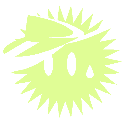 Animated sticker featuring Steibi Steibisonne, a spiky, sun-like character with a visor and a teardrop, in a light green hue.