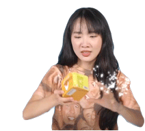 Softpomz looks confused holding two yellow items, with a question mark above her head.