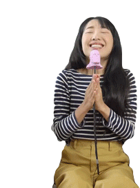 Softpomz performs a traditional Thai 'wai' greeting with a joyful smile, holding a pink microphone-like object.