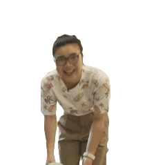 Mae Gotji from 'เกษียณสำราญ' laughs joyfully as a small object bounces off, a fun and happy moment.