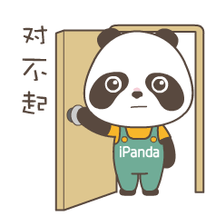 An iPanda character apologetically closes a door, expressing 'Sorry for disturbing' with Chinese text.