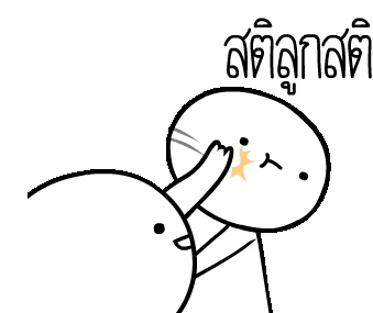 A cartoon character gently pats another's head, urging them to 'Get a grip, kid, get a grip' in Thai.