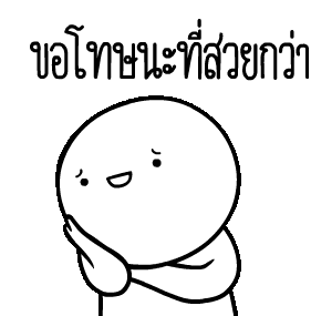 A round-headed cartoon character with a smug smile and hands clasped, playfully apologizing for being prettier.