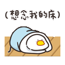 不理小雞, the adorable duck character, is wrapped in a blanket on a wooden floor, longing for its bed.