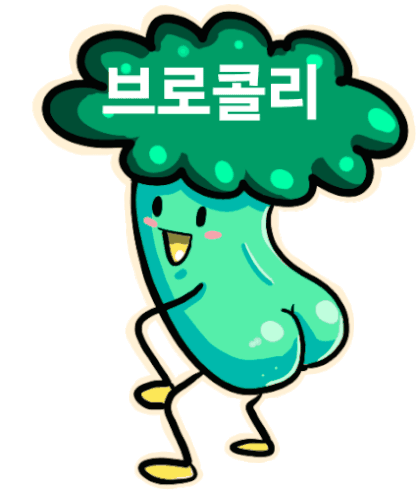 a cartoon drawing of a broccoli with asian writing