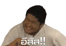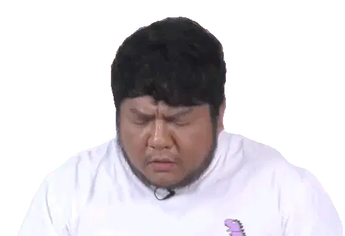 Nongmax, from Badofficial, is seen coughing and choking with a red face, wearing a blue smock, in a distressed reaction.